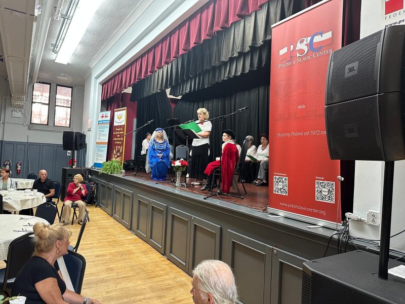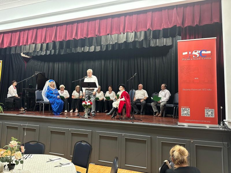 On September 11, the Krakus Senior Center, part of the Polish & Slavic Center, hosted a unique celebration – the National Reading of Jan Kochanowski’s poetry, created and led by Kasia Drucker together with the Theatre and Opera Society and Krakus Choir. The guest of honor was none other than Jan Kochanowski himself, brilliantly portrayed by Andrzejek Michoń, a well-known and beloved figure of the Polish community in New York. Kasia Drucker Voice, appearing as the “lady of Czarnolas court,” guided the entire program with elegance and artistry, recreating the atmosphere of the 16th century. The Krakus Choir performed the moving hymn “Czego chcesz od nas, Panie” and recited Kochanowski’s epigrams, songs, and laments. Volunteers from the Krakus and JP2 Clubs also joined in, embracing the challenge of reading the Master’s poetry live. The event was not only a beautiful encounter with literature but also a symbolic act of bringing generations together and celebrating Polish cultural heritage in the heart of New York. We warmly thank all participants and guests – and already invite you to next year’s National Reading!